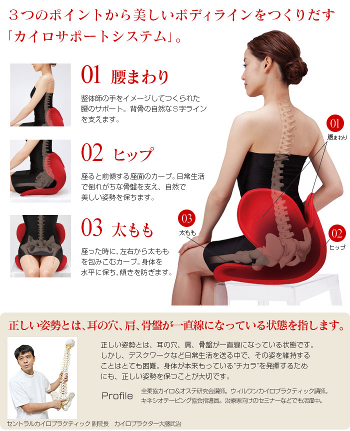 毎日、座椅子として使っています。長年姿勢の悪い状態を続けてきたせいか、最初は座ることさえきつかったのですが、鏡を見ながら正しい座り方を練習することで、やっと座れるようになりました。そのおかげで、肩こりや腰の疲労が軽減されてきたようです。